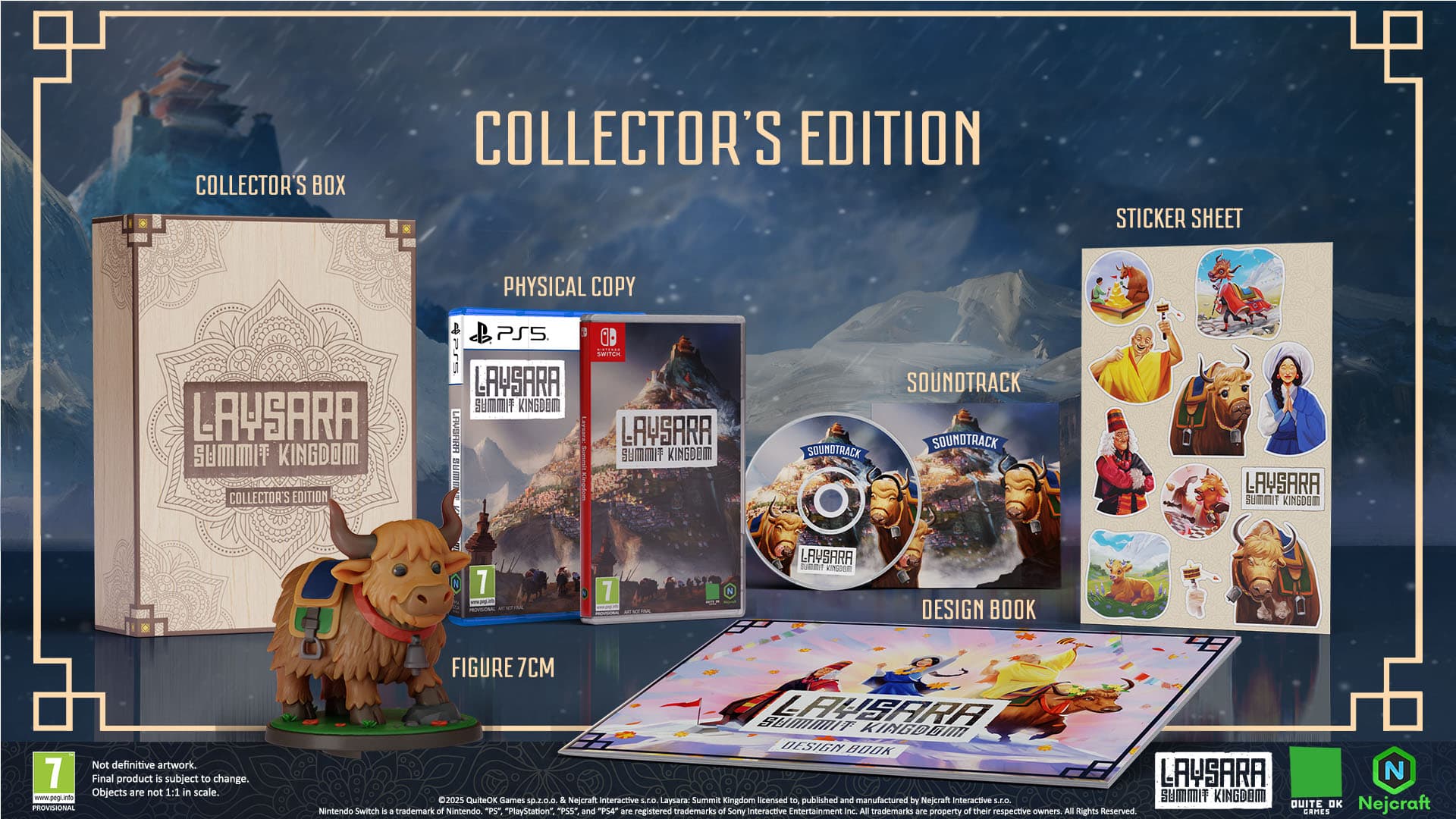 Build and expand your very own settlements in high mountains! Carefully plan production chains and satisfy various needs of your three-caste society while dealing with mountain hazards such as weather breakdowns and avalanches. Are you skilled enough to make your town thrive? Collector’s Edition Includes: - Collector’s Box - Physical Game - Original Soundtrack - Design Book - A5 Sticker Sheet - 7 cm Yak Figure